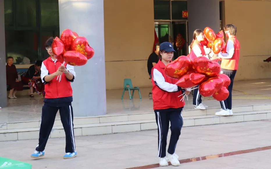 活动开始前,我校团员志愿者便提前抵达现场,主动承担起场地布置的重任。打气球、摆桌椅、整理活动物料……同学们分工明确、协作高效,为活动顺利开展筑牢基础。