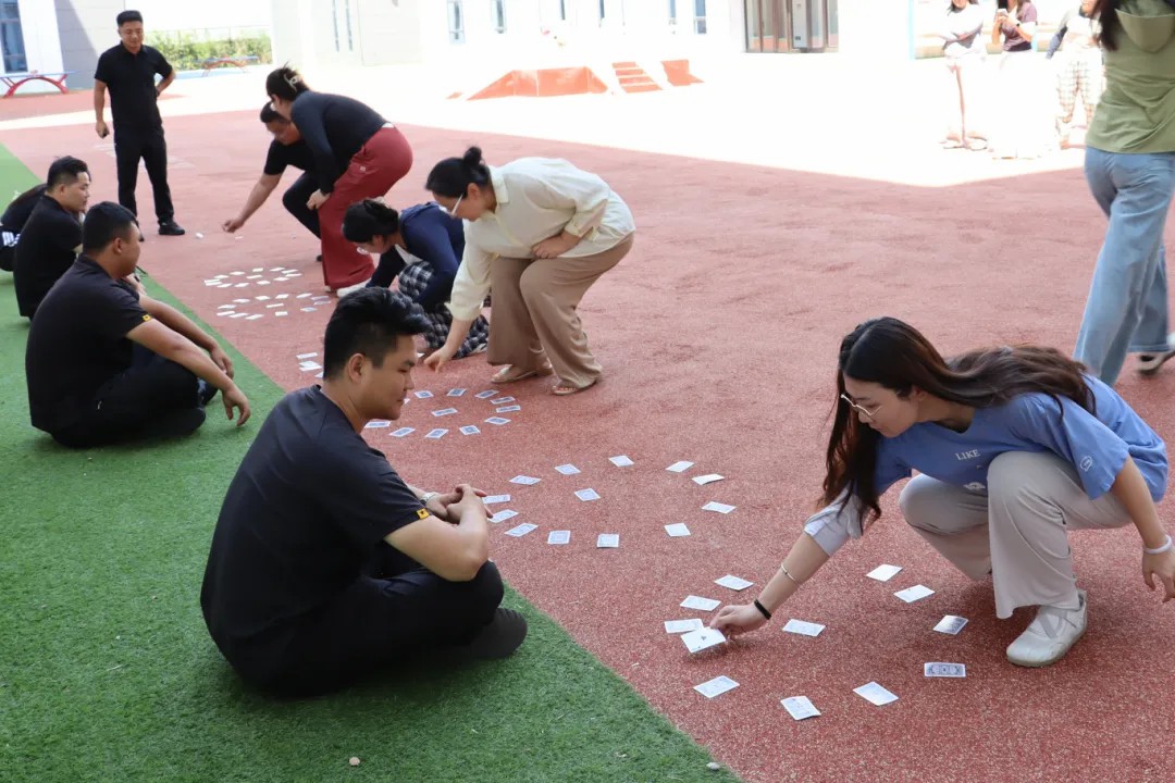 培训首日,全体教职工迎来为期一天的素质拓展训练。素质拓展以激发个人潜能、促进团队合作为活动核心。全体教职工随机组合分队,开始了充满竞争与合作的体验式拓展训练。